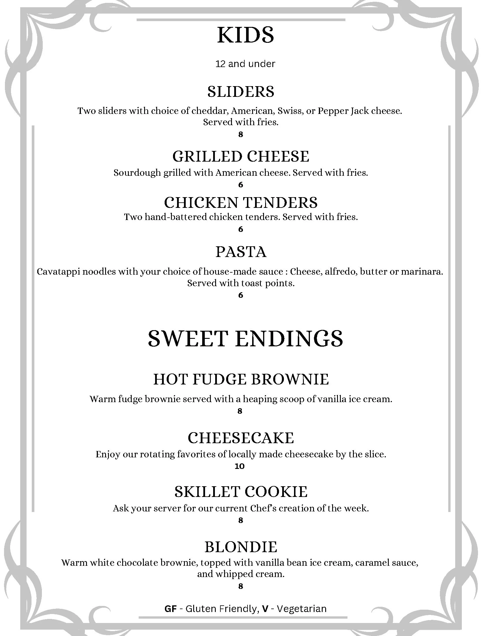 Menu creation, including weekly specials and specialty dinners